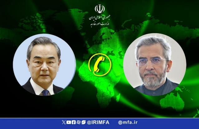 Iranian Acting Foreign Minister Ali Bagheri and Chinese Foreign Minister Wang Yi discussed regional developments and issues of mutual interest during a telephone conversation.