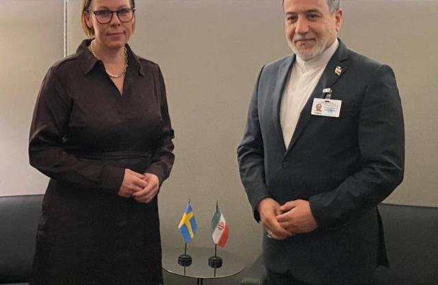 Seyed Abbas Araghchi, Minister of Foreign Affairs of the Islamic Republic of Iran, who is in New York to attend the annual session of the United Nations General Assembly, met this morning, Tuesday, with his Swedish counterpart, Maria Malmer Stenergard. In this meeting, the state of Iran–Sweden bilateral relations was reviewed. Discussions were also held on a range of international issues, particularly developments relating to international peace and security, the necessity of adherence by all States to the rule of law and the Charter of the United Nations, and the shared concerns of the international community regarding the intensification of unilateralist and militaristic tendencies. The Minister of Foreign Affairs of the Islamic Republic of Iran emphasized the shared responsibility of all governments to bring about an end to the genocide in Gaza and to hold the Zionist regime accountable for its ongoing violations of international peace and security.